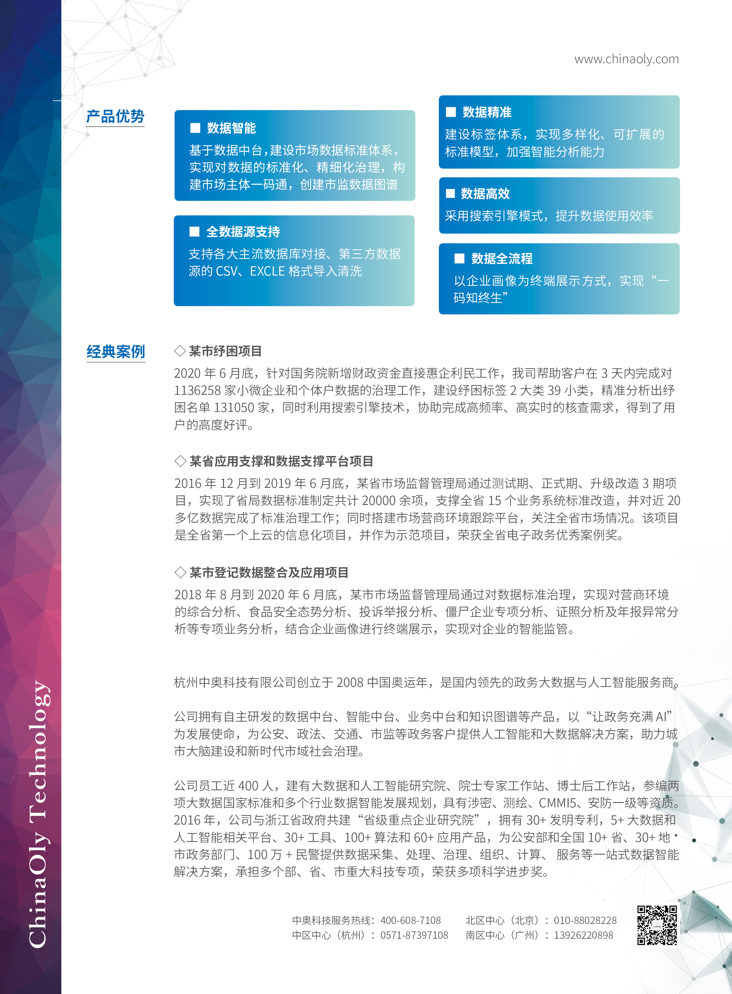 中奧“市監(jiān)數(shù)字應(yīng)用中心”是以市場監(jiān)管主體數(shù)據(jù)為基礎(chǔ),其它各行政部門數(shù)據(jù)為補充,通過數(shù)據(jù)中臺,實現(xiàn)數(shù)據(jù)的精細化治理,配合標(biāo)簽平臺,制定多樣化、可擴展的標(biāo)簽?zāi)P停_發(fā)面向市場主體的預(yù)防預(yù)警及分析模型,以可視化方式為市場監(jiān)督管理局提供決策分析基礎(chǔ)和智能的監(jiān)管手段,以數(shù)字化的方式提升市場監(jiān)督管理局管理效能。