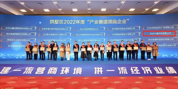 會上,對拱墅區(qū)經(jīng)濟高質(zhì)量發(fā)展作出貢獻的企業(yè)予以表彰并頒發(fā)獎牌,中奧科技有限公司榮獲2022年度“產(chǎn)業(yè)賽道領(lǐng)跑企業(yè)”榮譽。