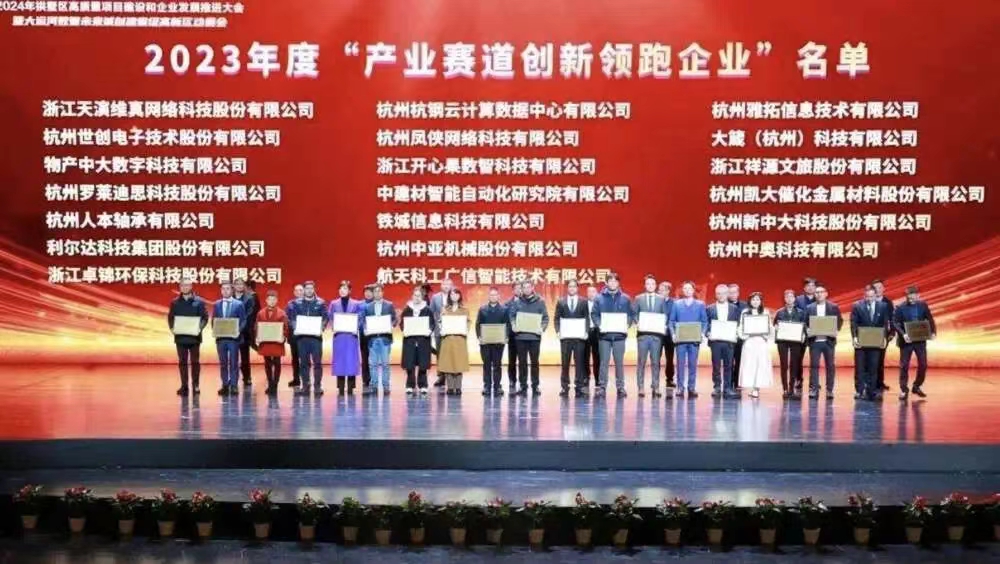 2024年2月28日,杭州市拱墅區(qū)召開“2024年拱墅區(qū)高質(zhì)量項(xiàng)目建設(shè)和企業(yè)發(fā)展推進(jìn)大會(huì)暨大運(yùn)河數(shù)智未來城創(chuàng)建省級(jí)高新區(qū)動(dòng)員會(huì)”。市相關(guān)部門領(lǐng)導(dǎo),區(qū)四套班子領(lǐng)導(dǎo),法、檢兩長,區(qū)直屬各單位、市直各延伸單位、各街道黨政主要負(fù)責(zé)人,大運(yùn)河數(shù)智未來城中層以上干部,市有關(guān)單位處室負(fù)責(zé)人,獲獎(jiǎng)企業(yè)代表,區(qū)內(nèi)合作金融機(jī)構(gòu)、高校和科研院校負(fù)責(zé)人參加。中奧科技作為獲獎(jiǎng)企業(yè)代表受邀參會(huì),并榮獲“產(chǎn)業(yè)賽道創(chuàng)新領(lǐng)跑企業(yè)”稱號(hào)。